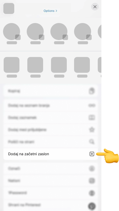 3. V odprtem meniju se pomaknite navzdol, poiščite gumb Dodaj na začetni zaslon in ga tapnite.